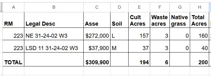 223 NE 31-24-02 W3 $272,000 L 157 3 0 160